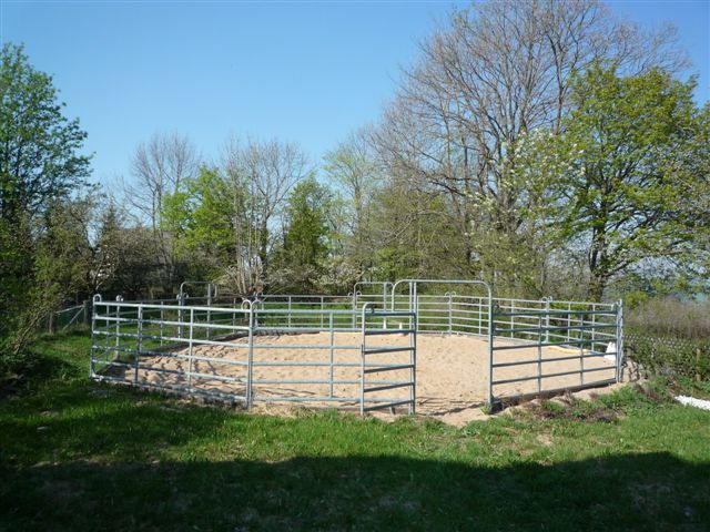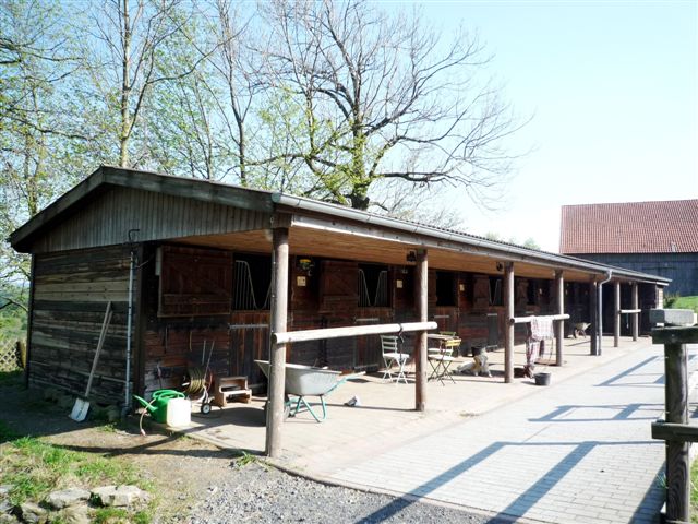 9 Pferde-Außenboxen, Paddock, Scheune, Werkstatt und 4 Garagen auf ca. 5.600 m² Grundstück.